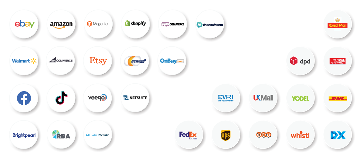 Standard Channels eBay, Amazon, OnBuy, Etsy, TikTok, Facebook, Walmart, BigCommerce, Shopify, Magento, WooCommerce